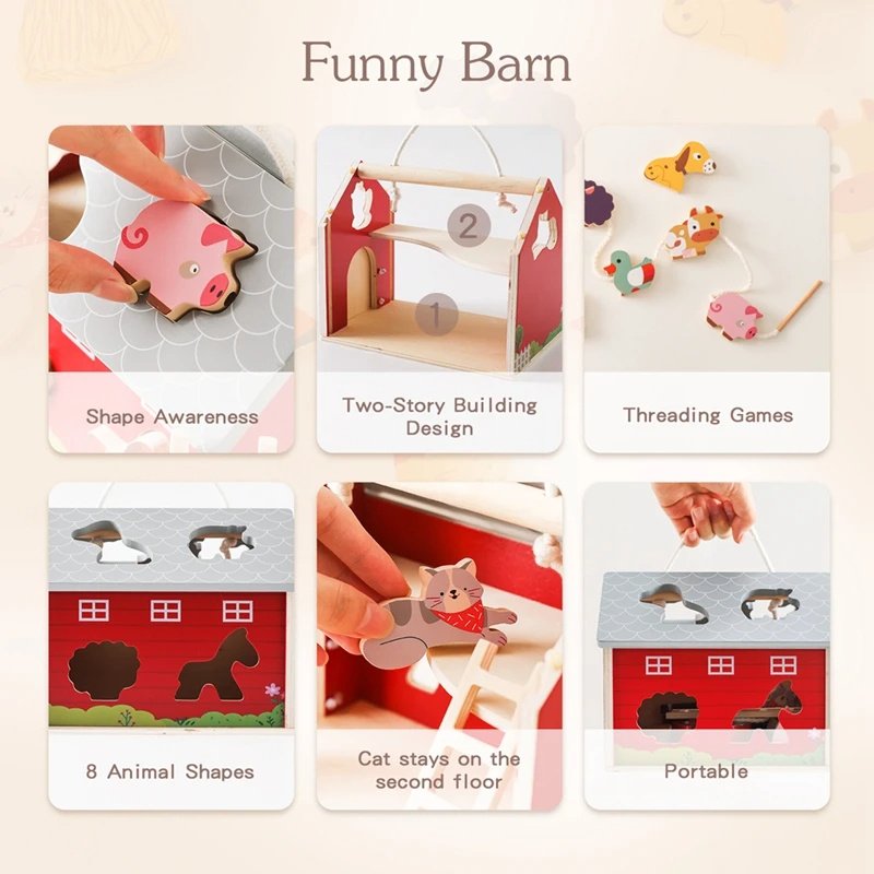 I am very satisfied! 1) It shipped faster than I think. 2) All details-figures were carefully packed. Big box is accurate without stickers, so a can use it for future present packing the toy and for storage the toy. 3) Natural wood. Colors are bright, in nature palette. The main – now we have a set of different funny games: puzzle, balancing game, the farm figures set, house and yard assembly. A want to play with it too 🙂