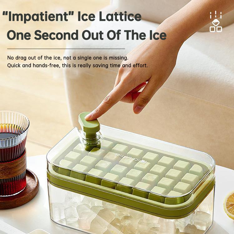 Easy release ice cube tray: This ice trays for freezer is designed with an innovative release design, which makes it easier to release. Just place the ice tray in the right position and press the green button on the lid with your finger and you can easily release the ice cube.