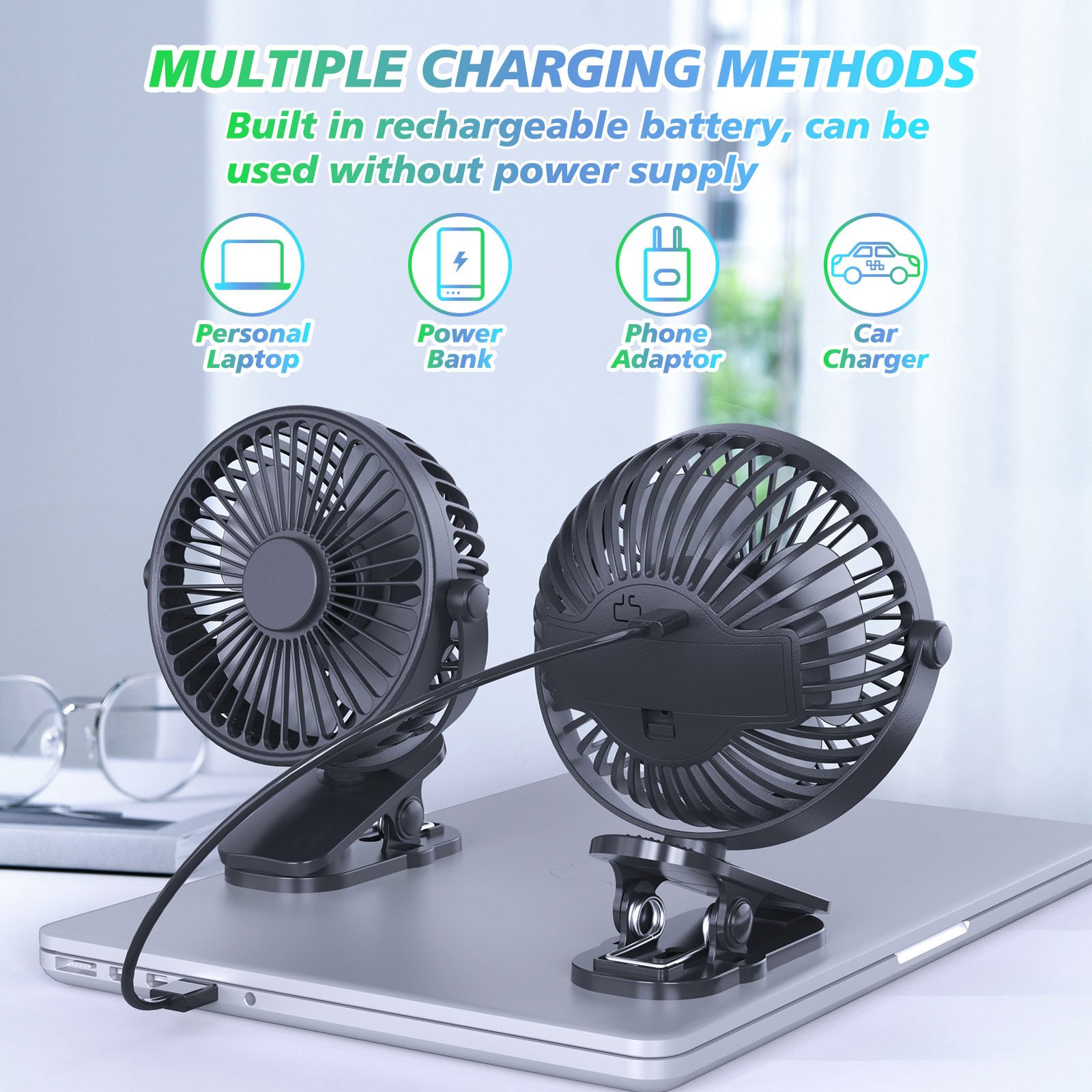 - 【Sturdy And Durable Clip】- This personal fan is equipped with an easy-to-open clip that clips onto things up to 1 inch thick. In addition, the inside of the clip is equipped with a sponge pad that won’t cause scratches.